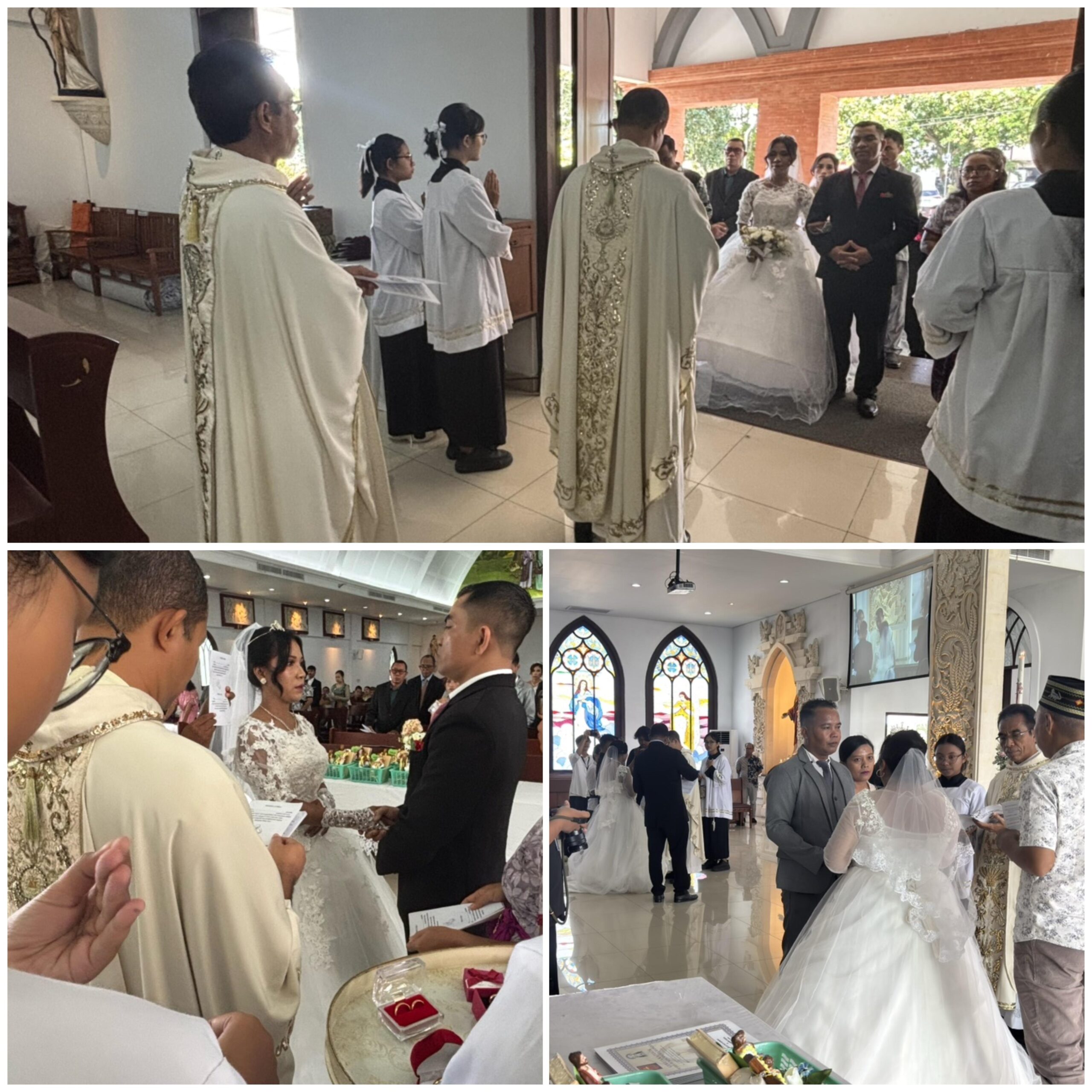 NUSA DUA – Gereja Katolik Maria Bunda Segala Bangsa (MBSB) Nusa Dua mengadakan pemberkatan perkawinan bersama pada Sabtu (18/04/2026) pagi. Pemberkatan tersebut dilakukan oleh Pastor Paroki RD. Adianto Paulus Harun bersama Pastor Rekan RD. Ferdy Panggur Burhan. Hadir juga Frater TOP, Fr. Yohanes I Ketut Salvatore Cardia.