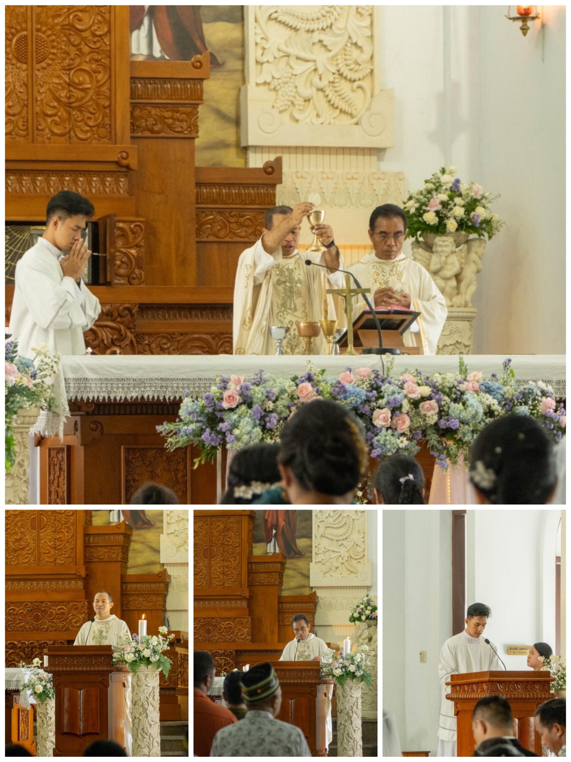 “Semoga Tuhan yang memberkati Anda sekalian senantiasa melimpahi saudara sekalian dengan roh kudusnya agar saudara sekalian mampu menghidupi cinta perkawinan ini dengan baik, sesuai dengan kehendak Tuhan,” tutupnya.