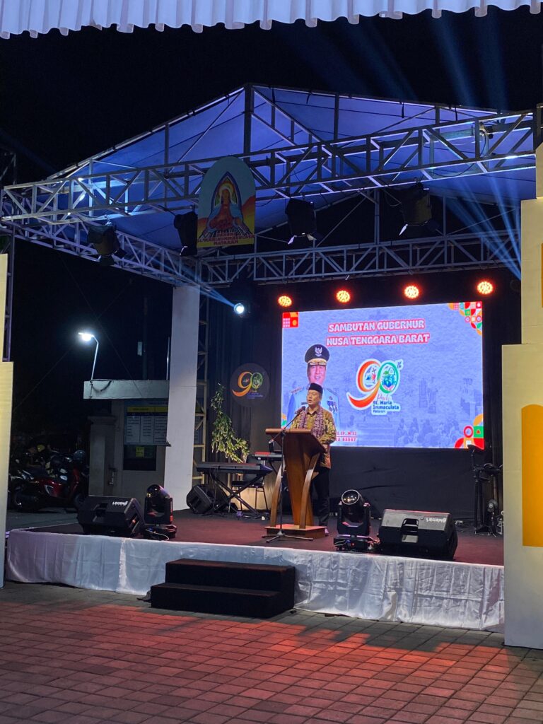 Dalam perayaan itu, orang nomor satu di NTB ini berkenan memberikan sambutan. Mengawali sambutannya Gubernur Lalu Muhammad Iqbal, mengucapkan selamat Ulang Tahun ke-90 untuk Gereja Katolik St. Maria Imaculata Mataram.