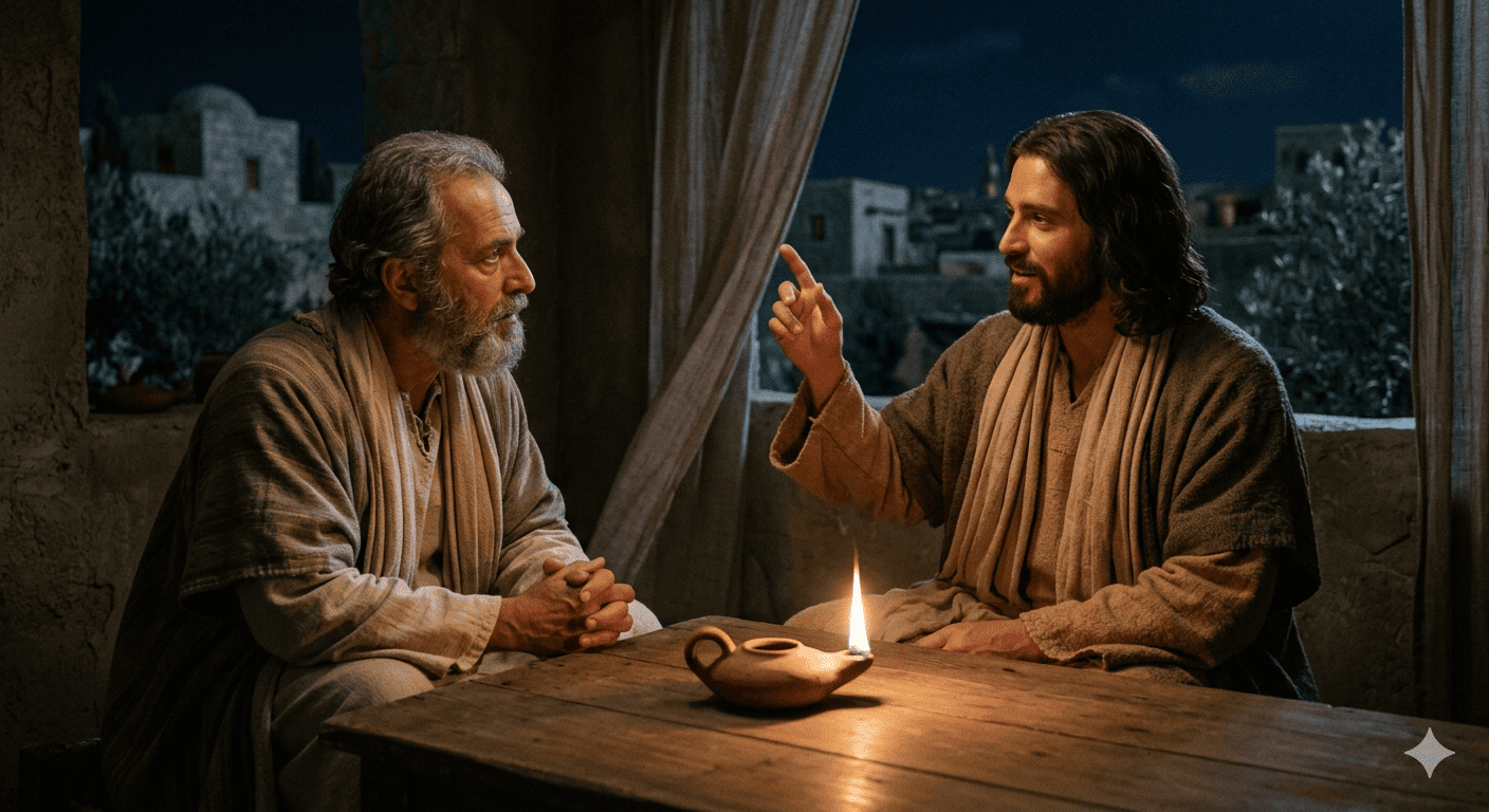 Yesus berbicara kepada Nikodemus tentang dilahirkan kembali dari Roh. Ia mengatakan bahwa angin bertiup ke mana ia mau, kita mendengarnya, tetapi tidak tahu dari mana datangnya dan ke mana perginya. Firman ini menunjukkan bahwa hidup dalam Tuhan bukan hanya soal memahami, tetapi percaya dan terbuka pada karya Roh (Yoh 3:7-15).