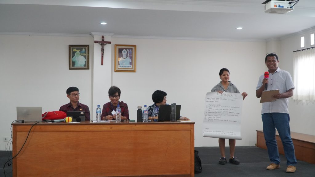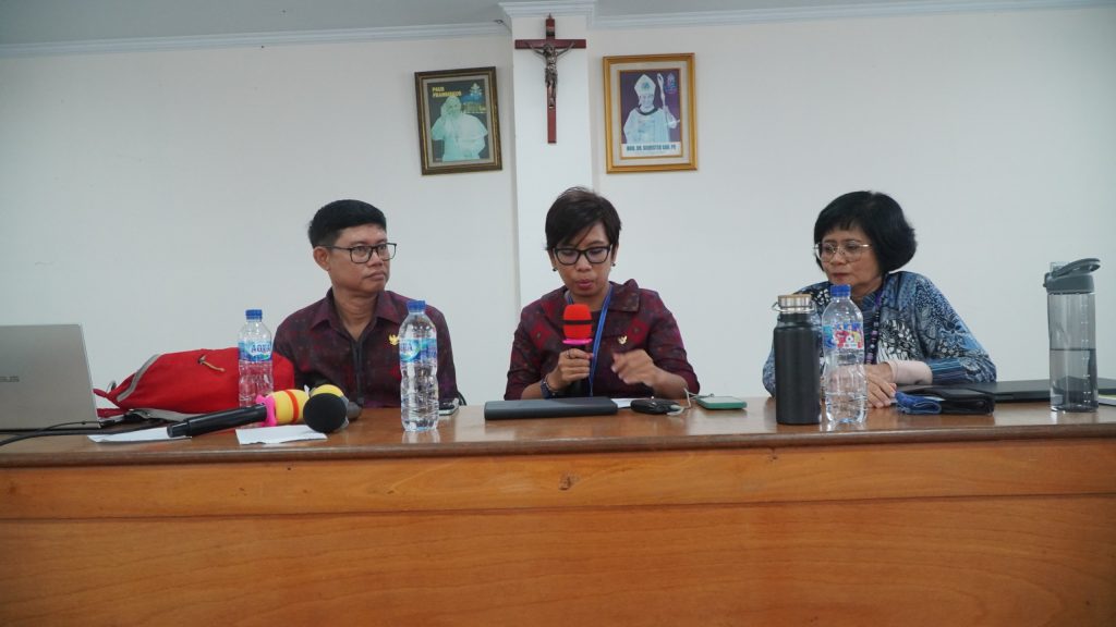 Kegiatan dilanjutkan dengan diskusi panel dengan menghadirkan tiga narasumber dari Sekretariat Gender dan Pemberdayaan Perempuan (SGPP) KWI dan Komisi Perlindungan Anak Daerah (LPAD) Bali, yaitu Theresia Triza Yusino dari SGPP KWI dan Geneveiva Ni Luh Putu Gede Yastini (Ketua KPAD Bali) serta Antonius Lilik Ismurtono Santoso (Komisioner KPAD Bali).