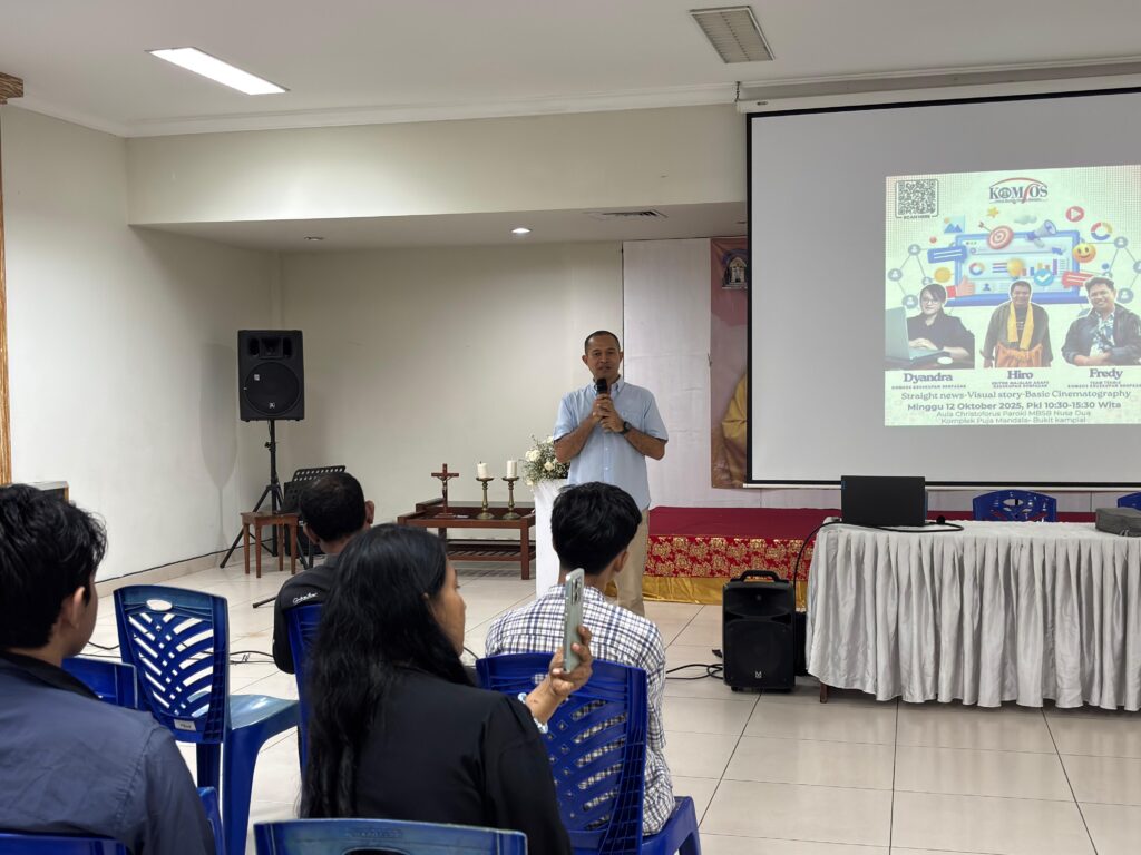 Sesi kedua diisi oleh Fredy, yang memperkenalkan peserta pada prinsip dasar sinematografi — mencakup aspek teknis dan artistik dalam pengambilan gambar untuk menghasilkan visual yang mendukung pewartaan.