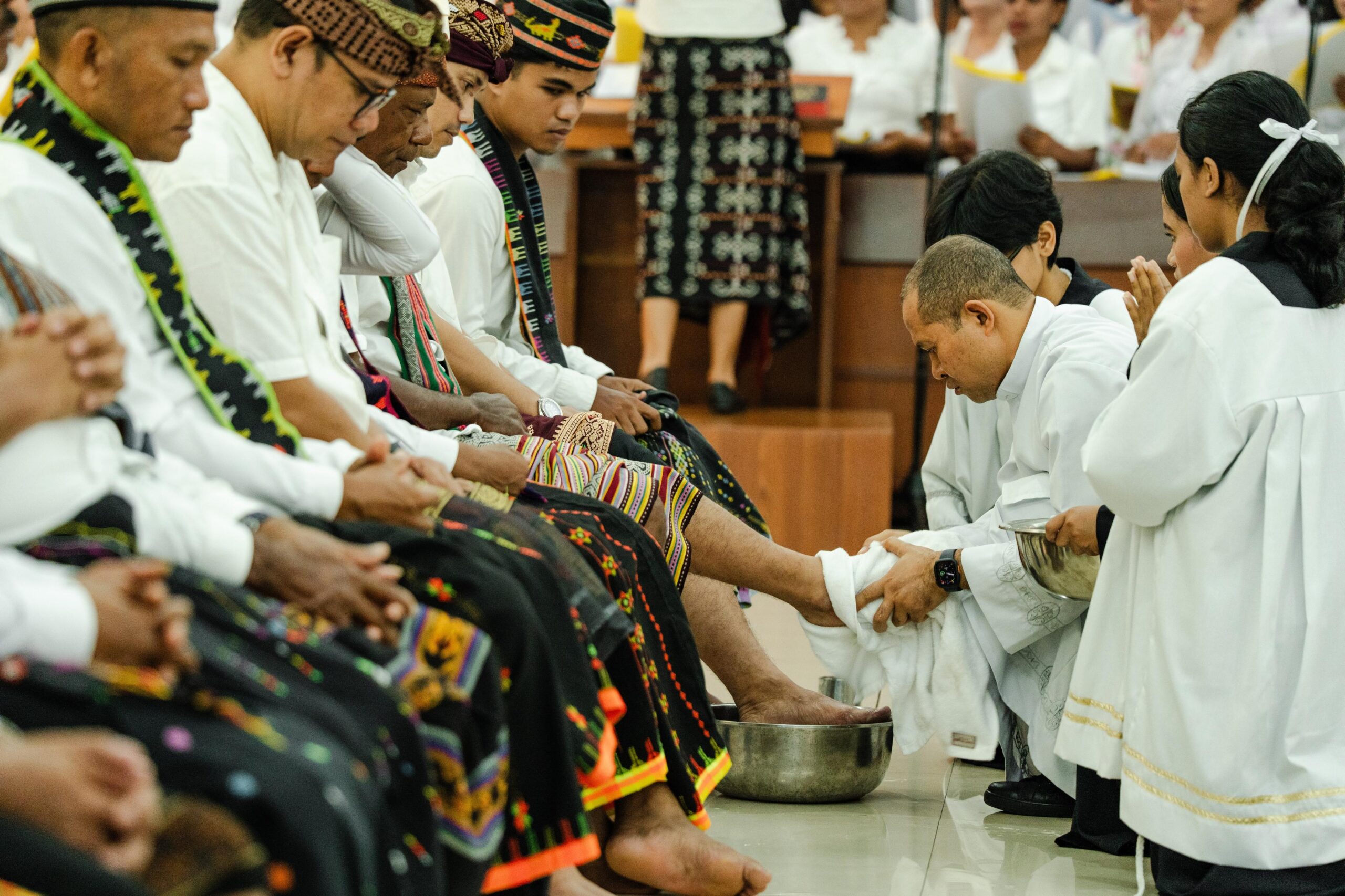 Ibadat dilanjutkan dengan pembasuhan kaki oleh RD. Adianto kepada dua belas orang wakil lingkungan yang terpilih sebagai Rasul. Salah satu Rasul yang mendapat kesempatan dibasuh oleh RD. Adianto adalah Halyuda dari Lingkungan Stella Maris.