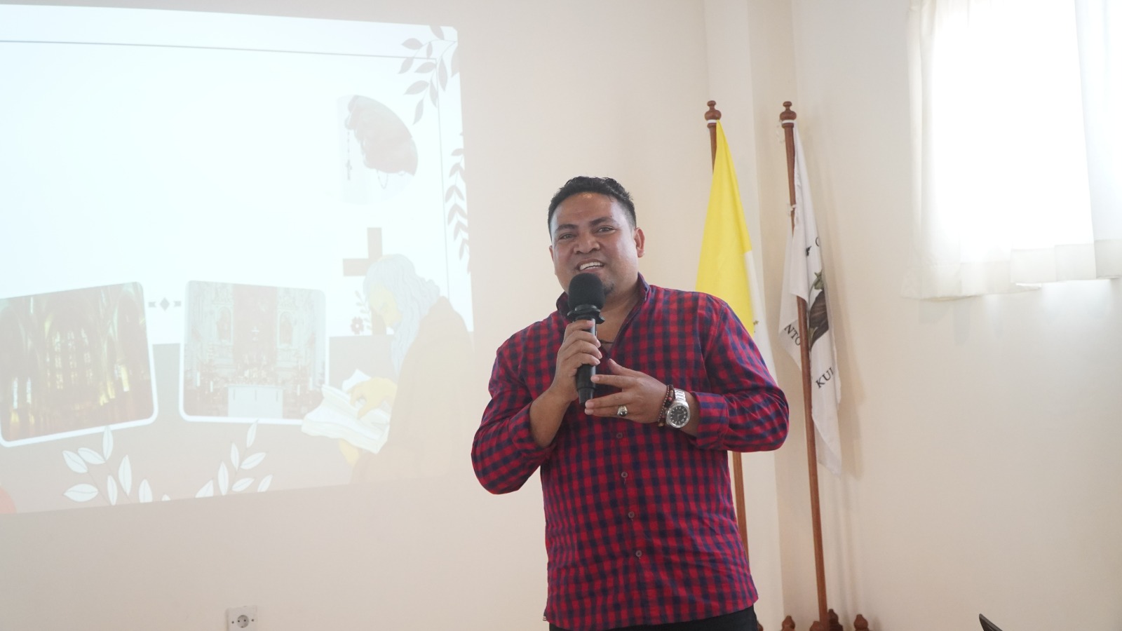 Rm. Flavianus Endi, dalam giat sehari ini juga menjadi mitra diskusi (narasumber) bersama dua narasumber lainnya yaitu Yosep Yulius Diaz- Ketua Komisi Keadilan, Perdamaian dan Pastoral Migran Perantau (KKP-PMP) Keuskupan Denpasar) dan Herman Joseph Siu Ngadha – Ketua Umum Ikatan Keluarga Ngada (Ikada) Bali.