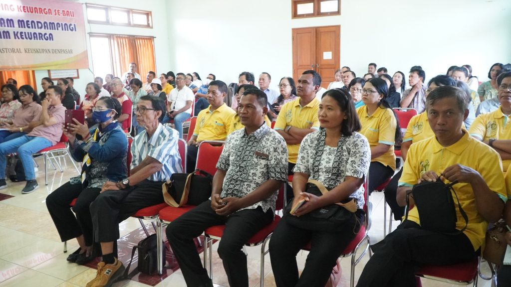 Kehadiran mereka dalam rangka mengikuti pembekalan sekaligus menjadi tema kegiatan itu ‘Peran Orang Tua dalam Mendampingi Iman Anak dalam Keluarga.’ Kegiatan ini diselenggarakan oleh Komisi Keluarga Puspas Keuskupan Denpasar.