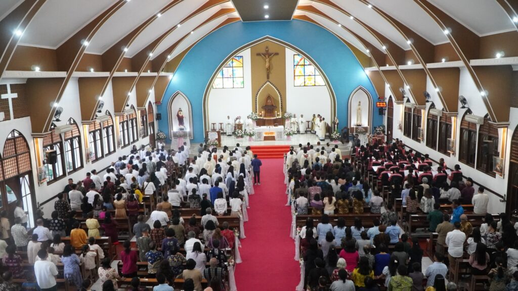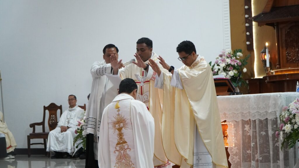 Pesan penuh makna itu disampaikan Mgr. San, dalam sambutan (sapaan kasih) pada upacara tahbisan kedua imam di Gereja Ampenan, Selasa (21/10/2025) petang.